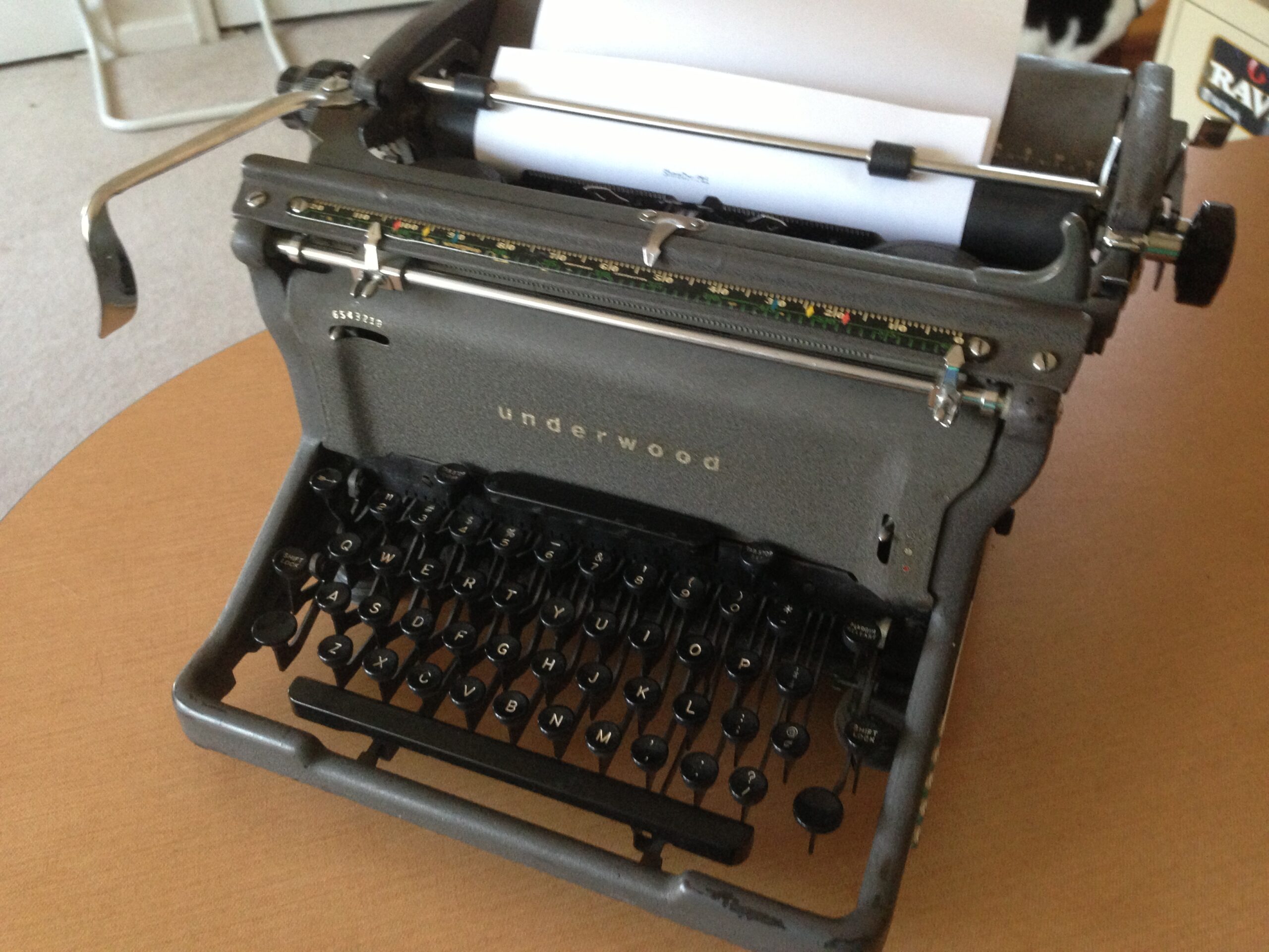Sitting on a little desk in her spare bedroom was this bad boy, the Underwood Rhythm Touch De Luxe model from 1949 (which I wrote about in more detail here).