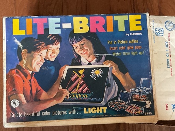 I have always loved the Lite-Brite. There’s something so simple yet magical to the concept of creating pictures with tiny colored pegs of light. How they glowed so beautifully in those iconic Lite-Brite colors of red, blue, green, yellow, orange, pink, violet, and clear. That box art is iconic, with promises of letting you live out your wildest creative fantasies (assuming your wildest creative fantasies could be depicted using only eight colors).